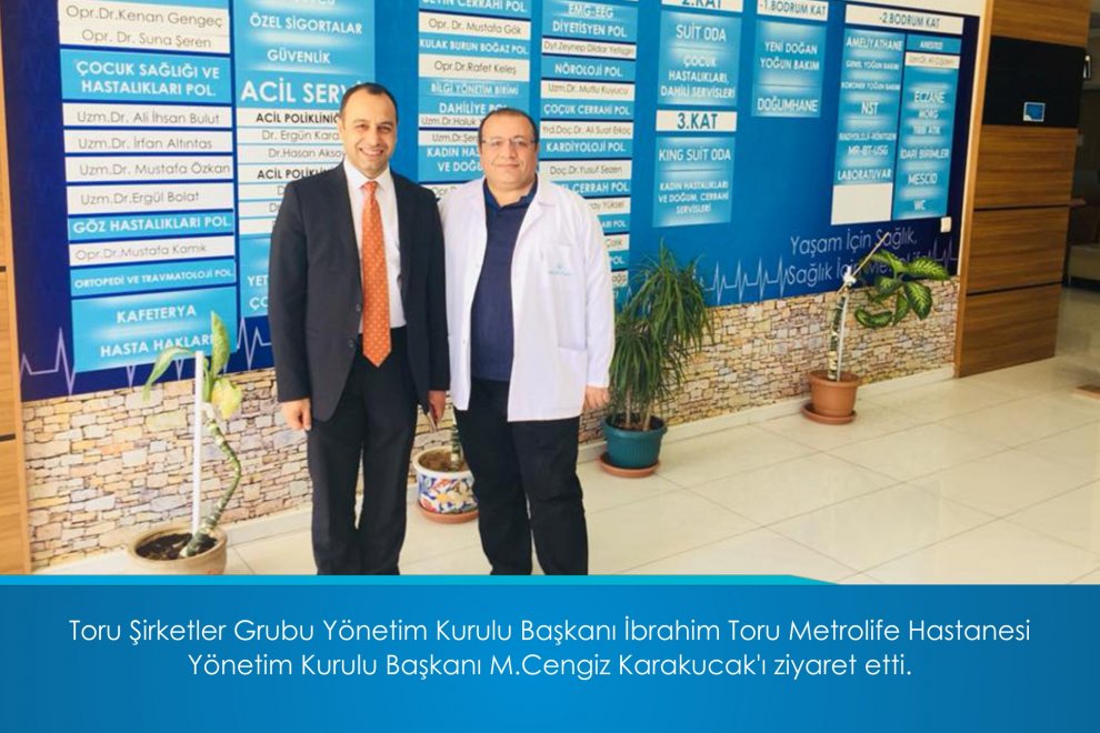 Toru Şirketler Grubu Yönetim Kurulu Başkanı İbrahim Toru Metrolife Hastanesi Yönetim Kurulu Başkanı M.Cengiz Karakucak'ı ziyaret etti.